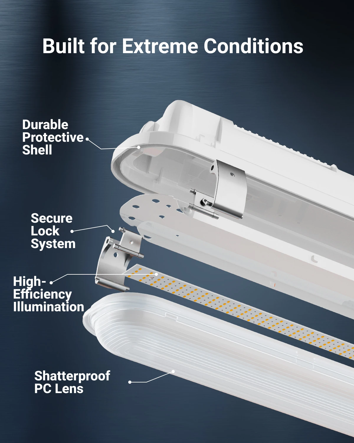 Light up garages and warehouses with this 2ft LED Vapor Tight Fixture—durable, efficient, and fully adjustable in brightness and color.