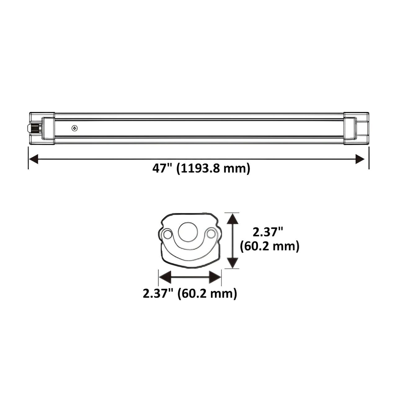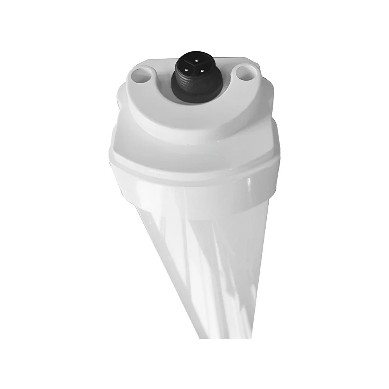 - Extruded opal prismatic material with white PC end caps for UV protection, weather and impact resistance, and uniform light diffusion