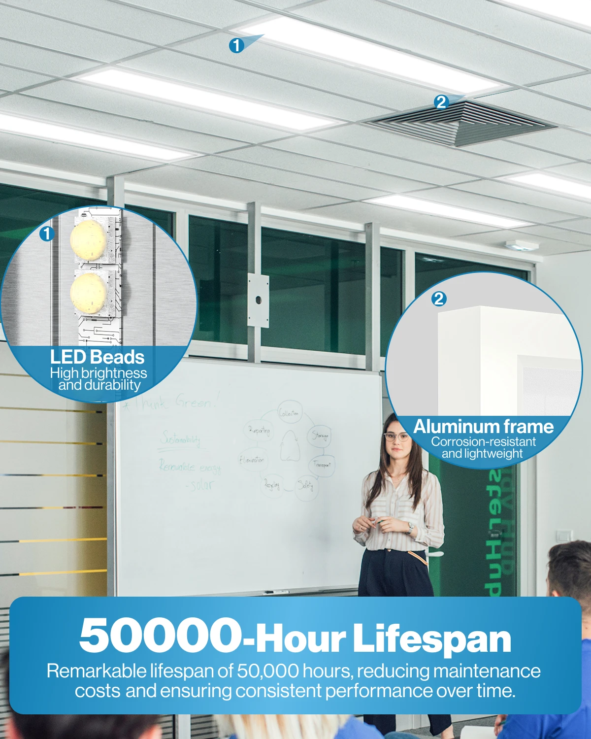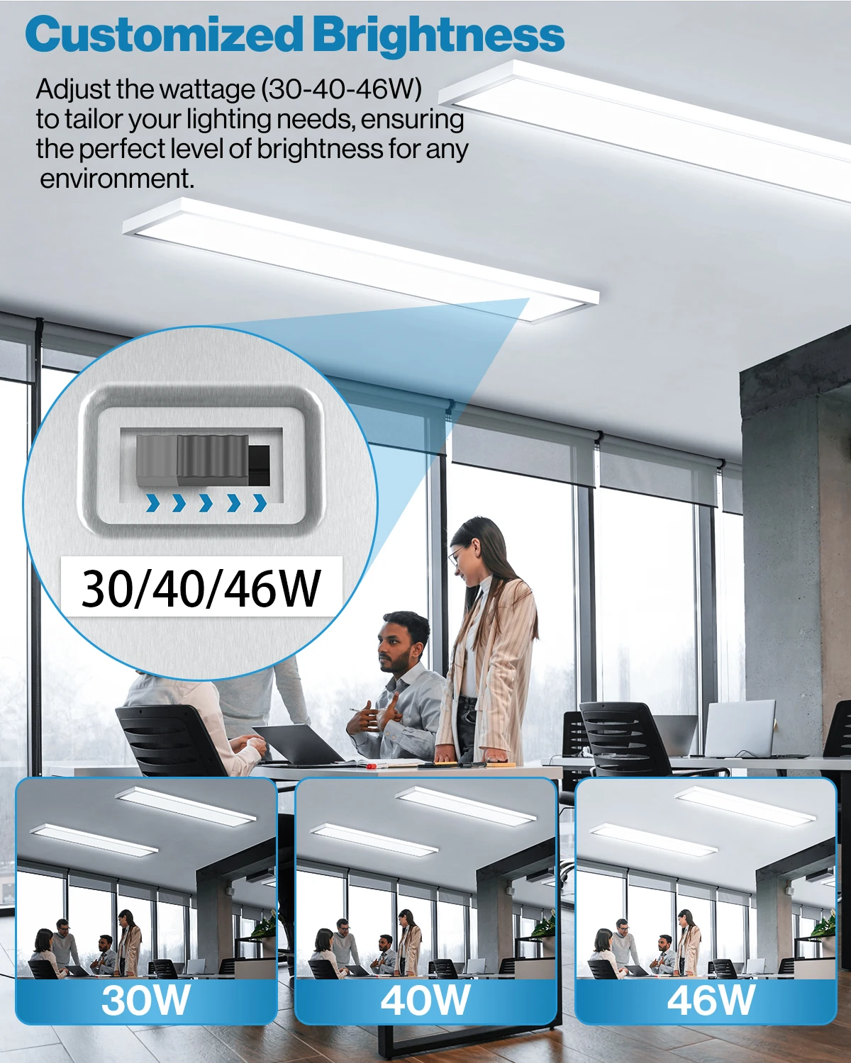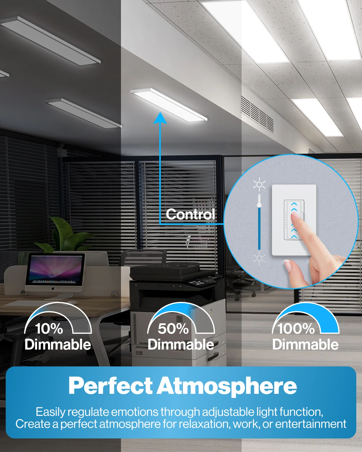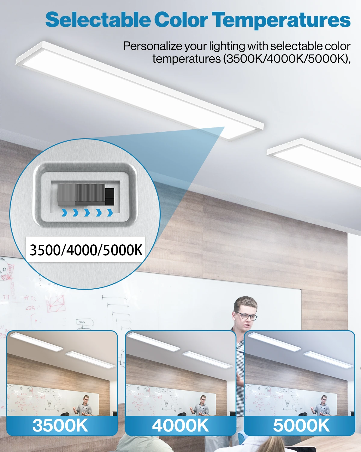 Selectable color temperature. Dimmable, dustproof, and durable 1×4 white ceiling panel lights.