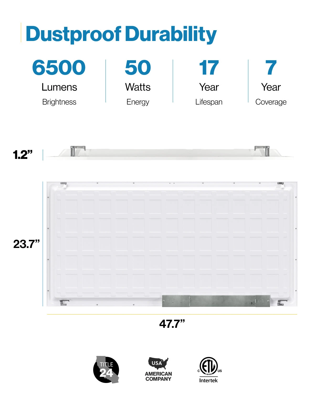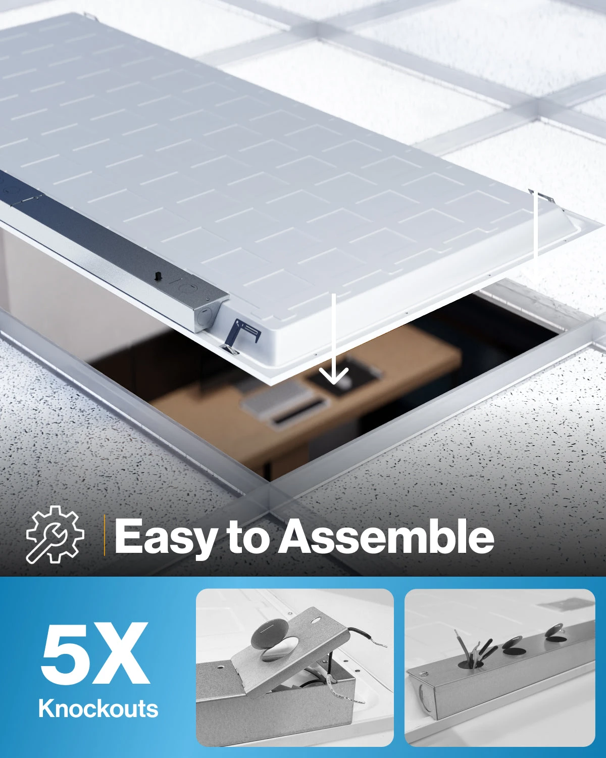 LED Ceiling Panel Light, 50W/40W/30W, 2×4, Selectable Wattage & CCT, 6500 Lumens