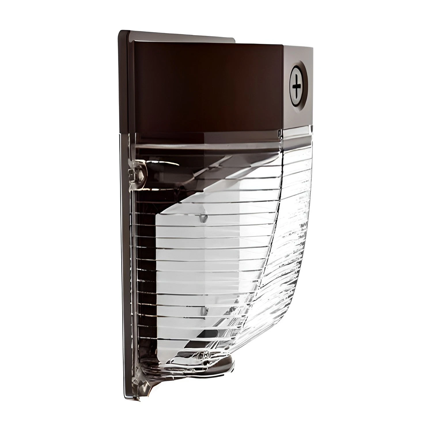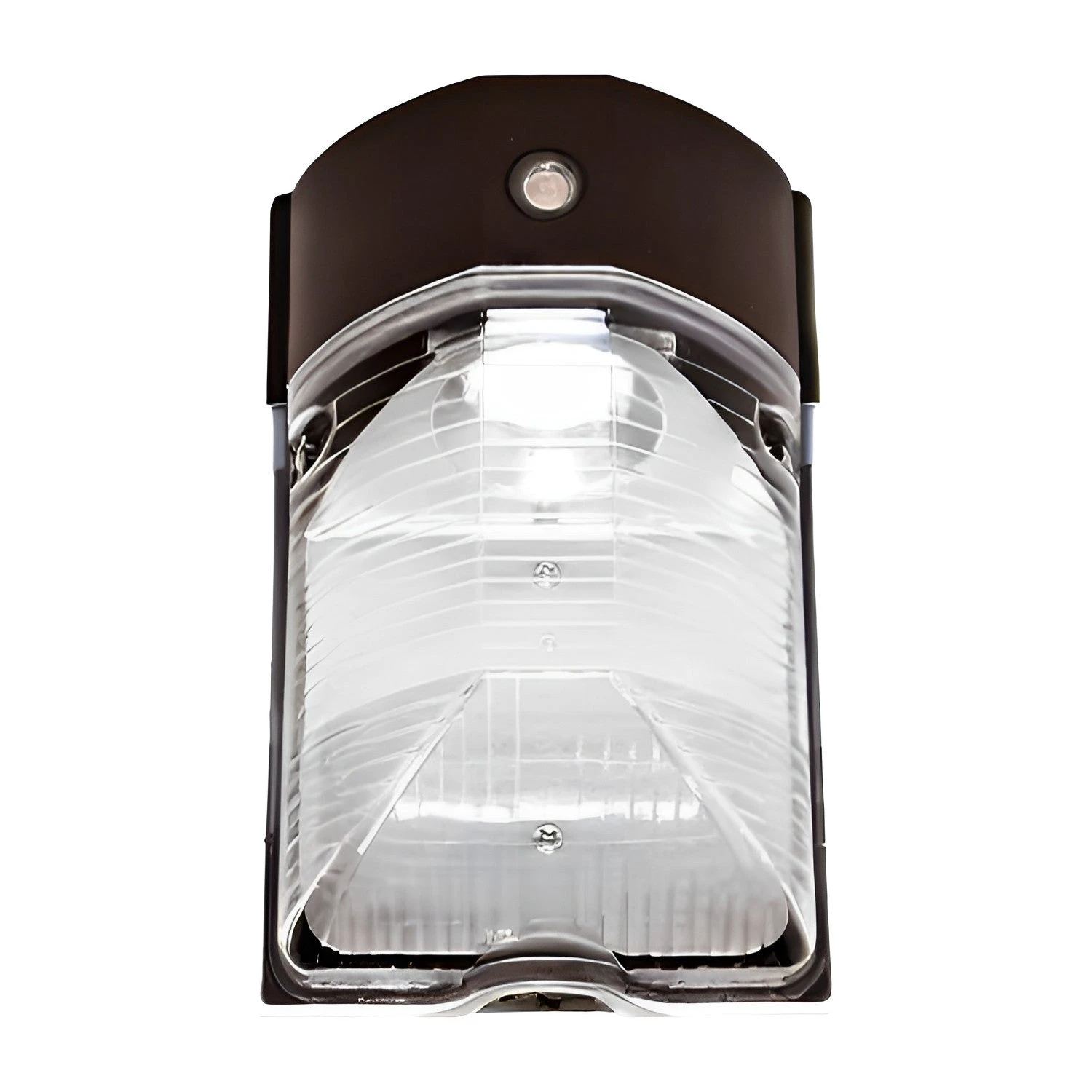 The LED Mini Wall Pack fixture is an energy-efficient outdoor light designed to replace metal halide or HPS lamps. Equipped with a photocell sensor, this dusk-to-dawn wall pack light ensures your area is well-lit at night and off in the daytime. With its compact size and less obtrusive design, it produces up to 3,588 lumens of bright 5000K daylight illumination while using only 26W. This combines form and function seamlessly, making it a perfect addition to any outdoor space such as backyards, parking lots, and more. It also features an aluminum housing coated with a corrosion-resistant bronze finish to ensure heat dissipation and durability. Ideal for enhancing security and visibility, this exterior wall light is perfect for commercial and residential applications.