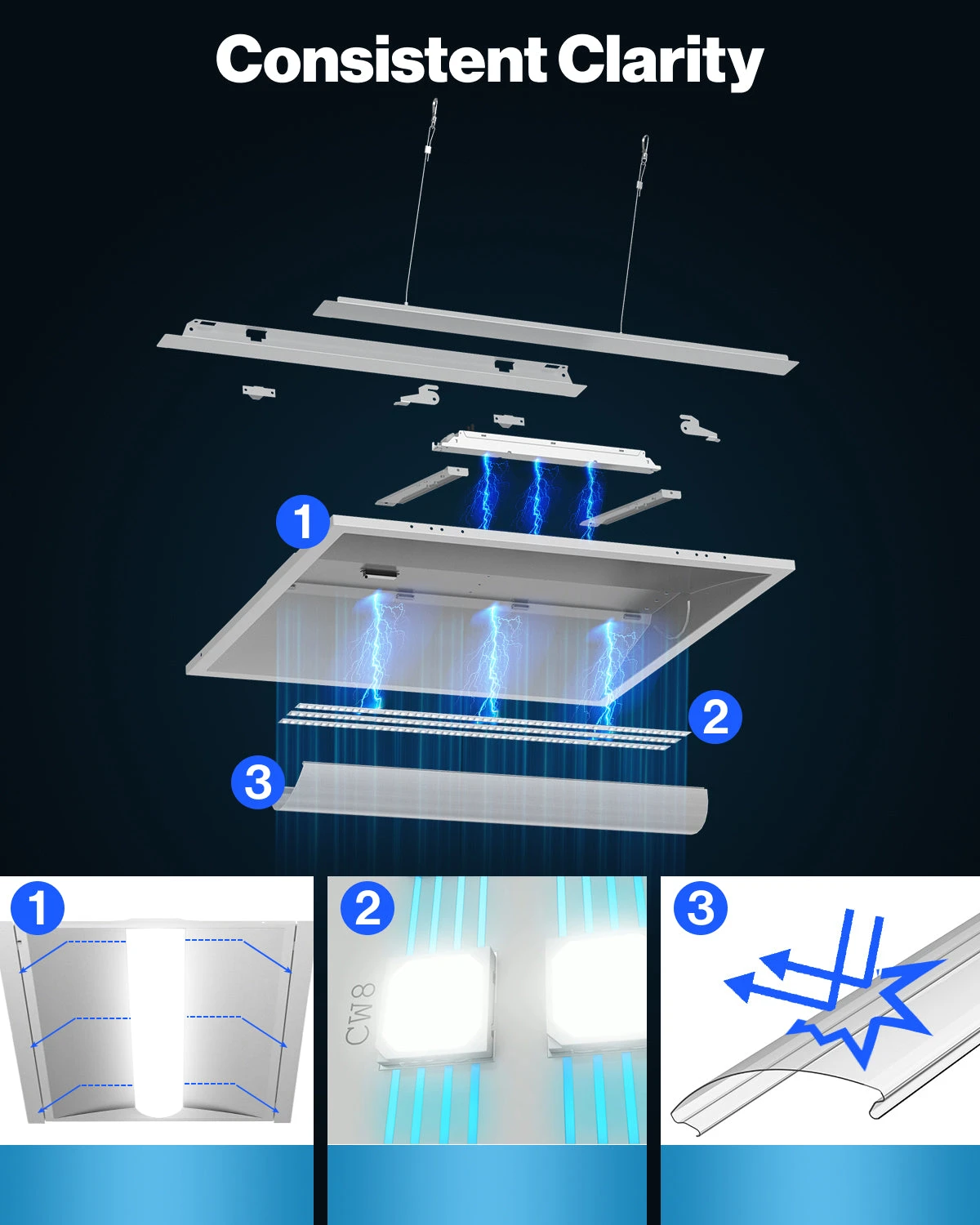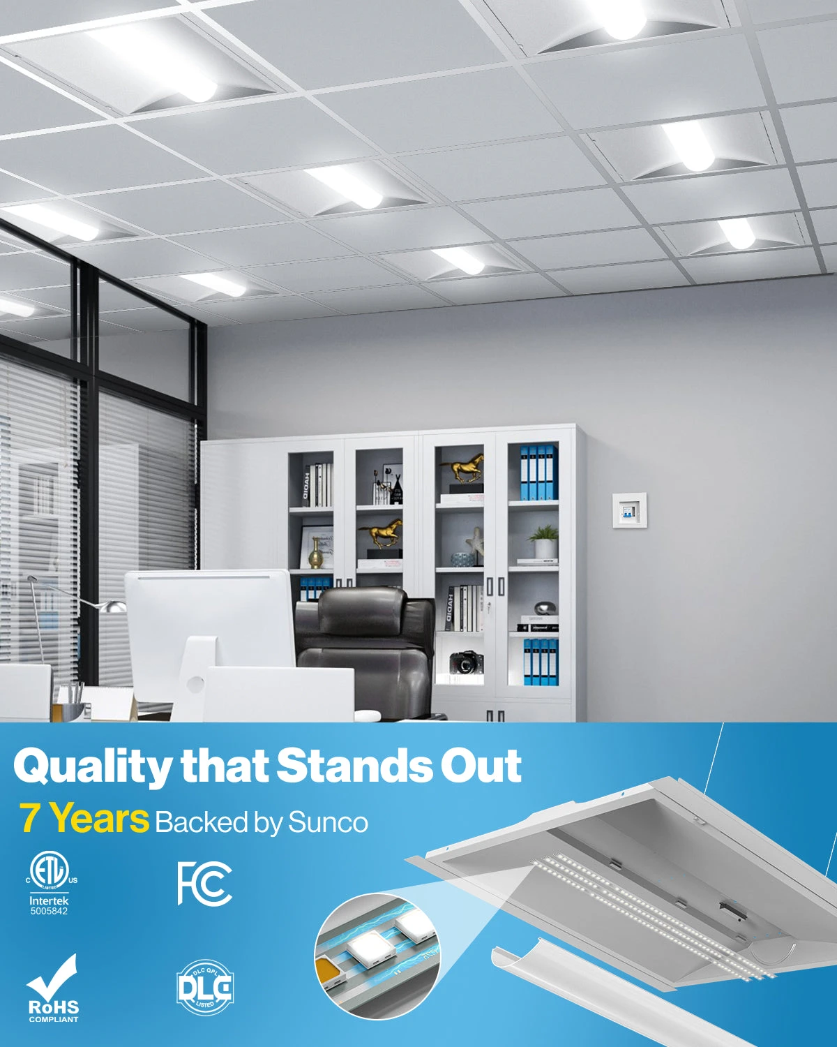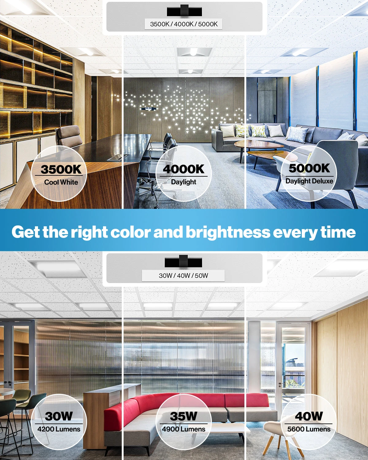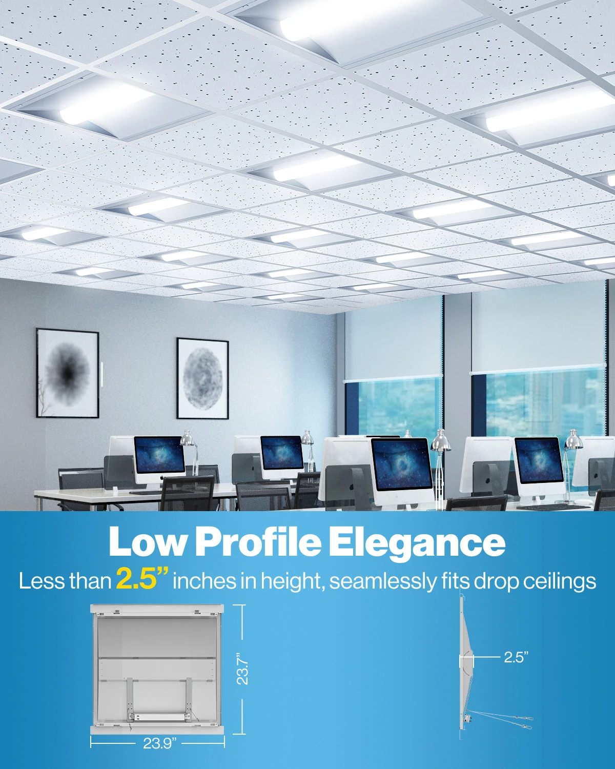 The 2×2 LED Selectable Ceiling Panel by Sunco provides instant, bright light with no buzzing or flickering. Ideal applications include retail locations, showrooms, schools, healthcare facilities, and commercial office buildings. The panel has various color temperatures, and fits standard drop ceilings for recessed or suspended installation.