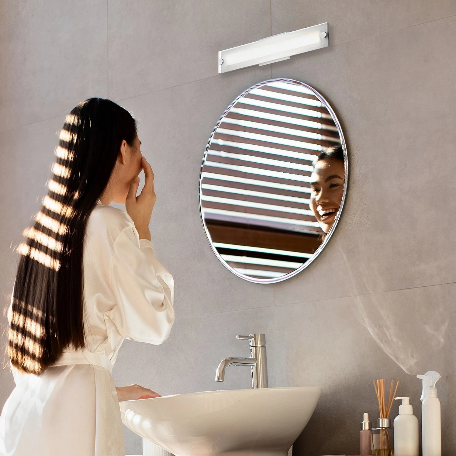 Brighten up your home with the contemporary look of the LED Satin Nickel Vanity Light fixture. This vanity sconce boasts a versatile design that complements various décor styles such as modern, bohemian, or transitional. It has a sleek steel frame with a glass shade that offers exceptional functionality and timeless elegance. Emitting 1350 lumens using 19W, it ensures efficient and ample lighting for your bathrooms, living rooms, and more. The tunable color temperatures allow you to customize the lighting ambiance to suit your preferences, from cozy to a brighter, more energizing atmosphere. Whether aiming for a modern, industrial-chic look or a classic ambiance, this wall light fixture is sure to impress.
