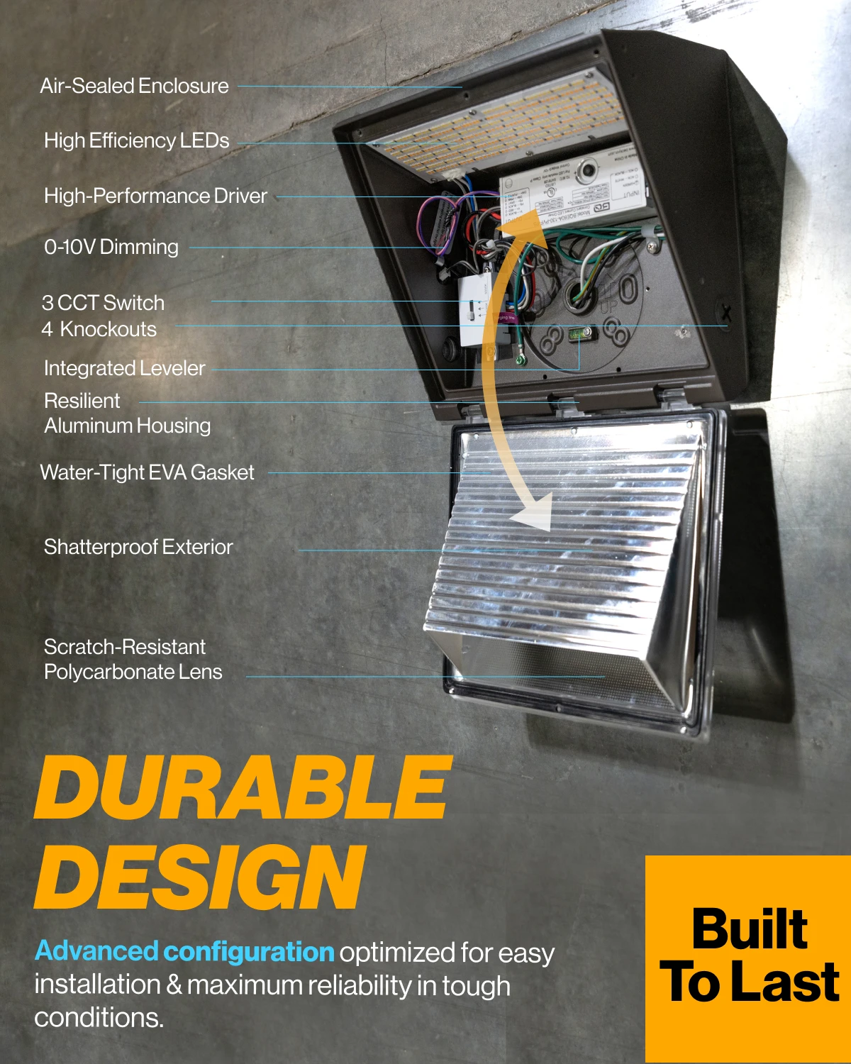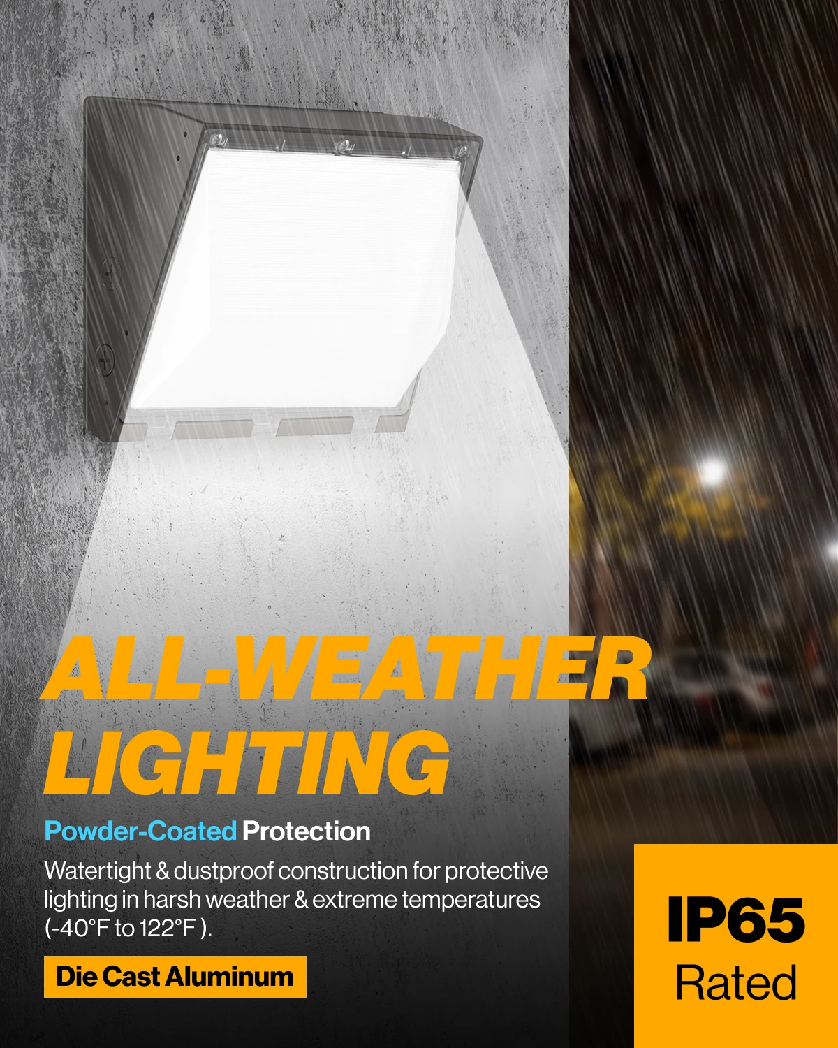 Wet rated high lumen Semi Cutoff LED Wall Pack. Quickly install.