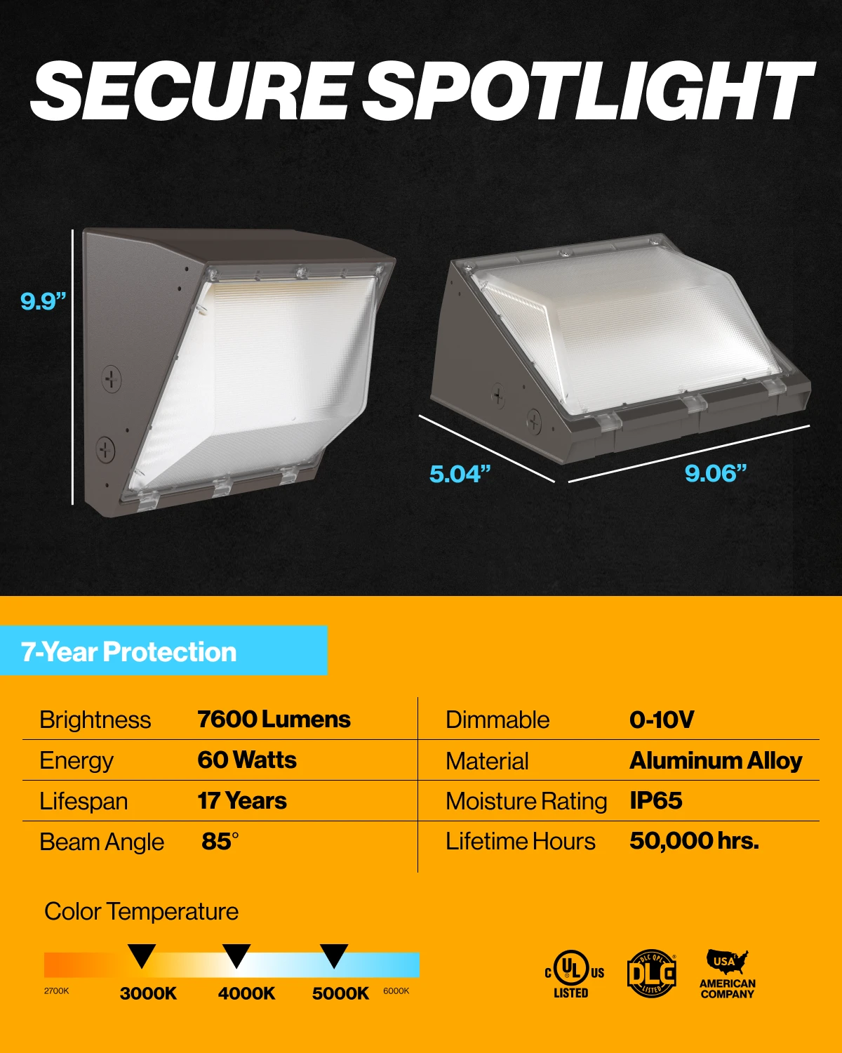 | Color | Selectable 3000K-4000K-5000K |