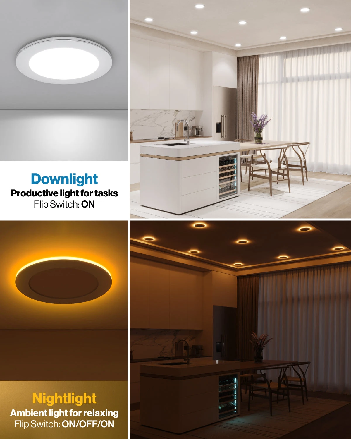 Recessed LED Lighting, 4 Inch, Slim, Wafer Thin, Night Light, Selectable CCT (2700K-6000K), 900 Lumens