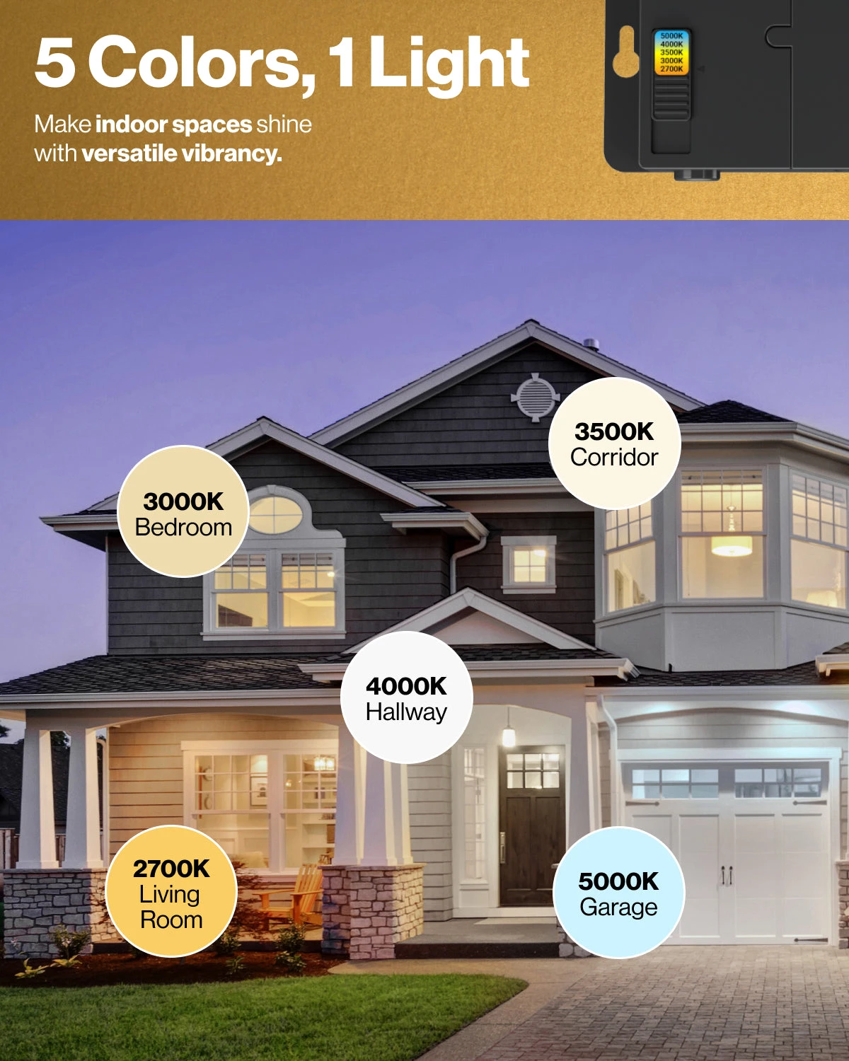 Integrated night ambient light. IC rated for fire safety. Fast install with all in one package. No can needed. Selectable Color Temperature.
