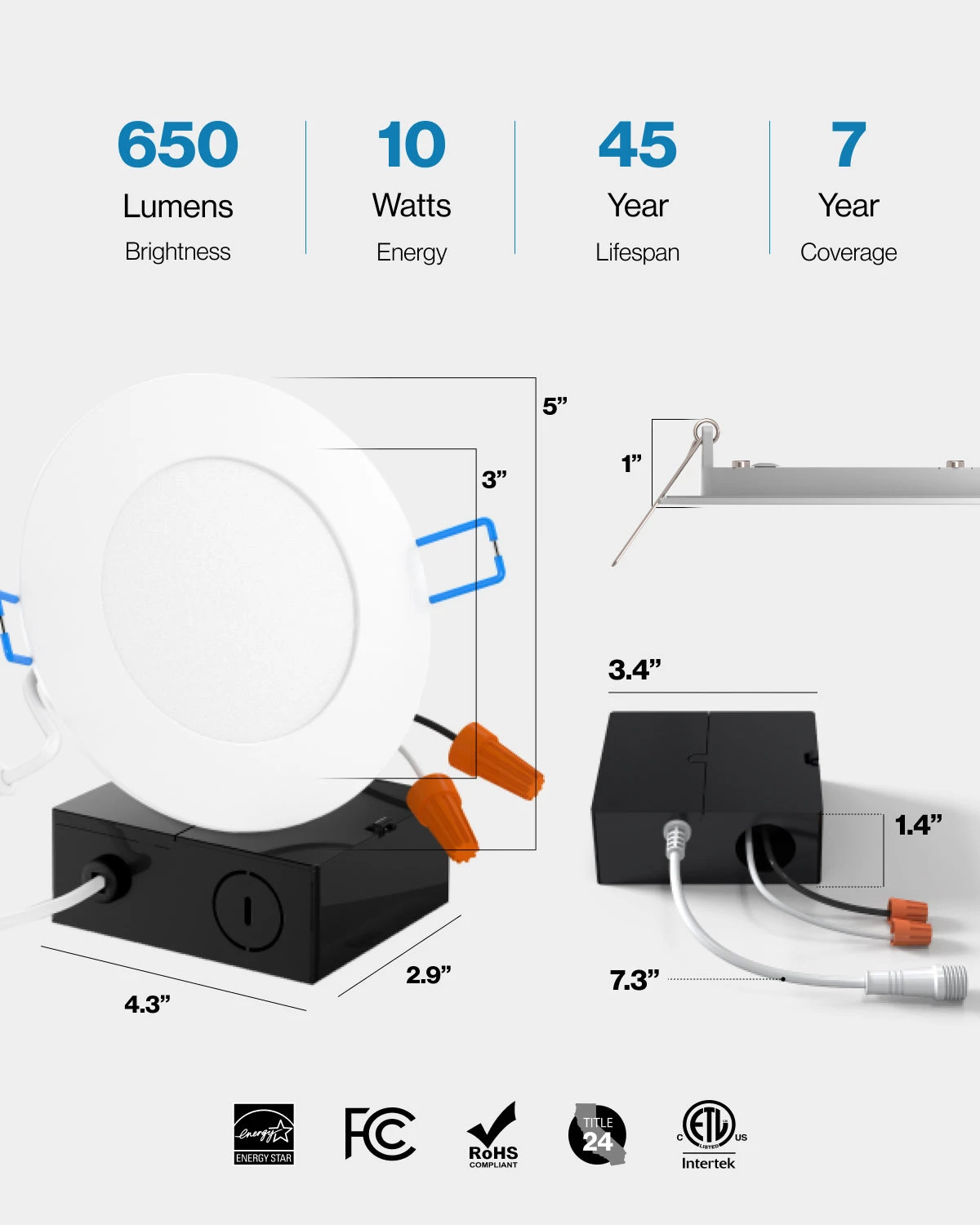 | Color | 2700K, 3000K, 4000K, 5000K, 6000K |