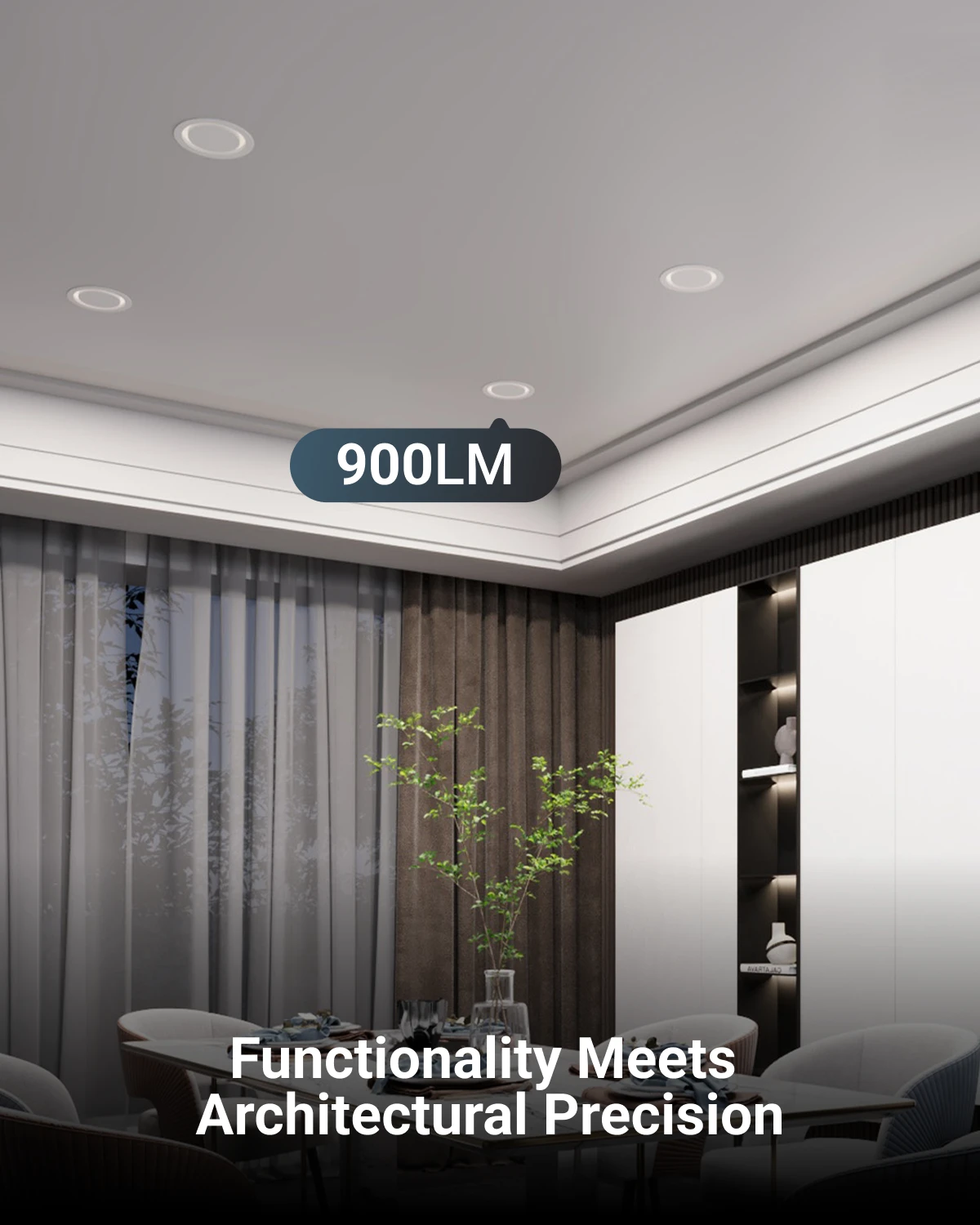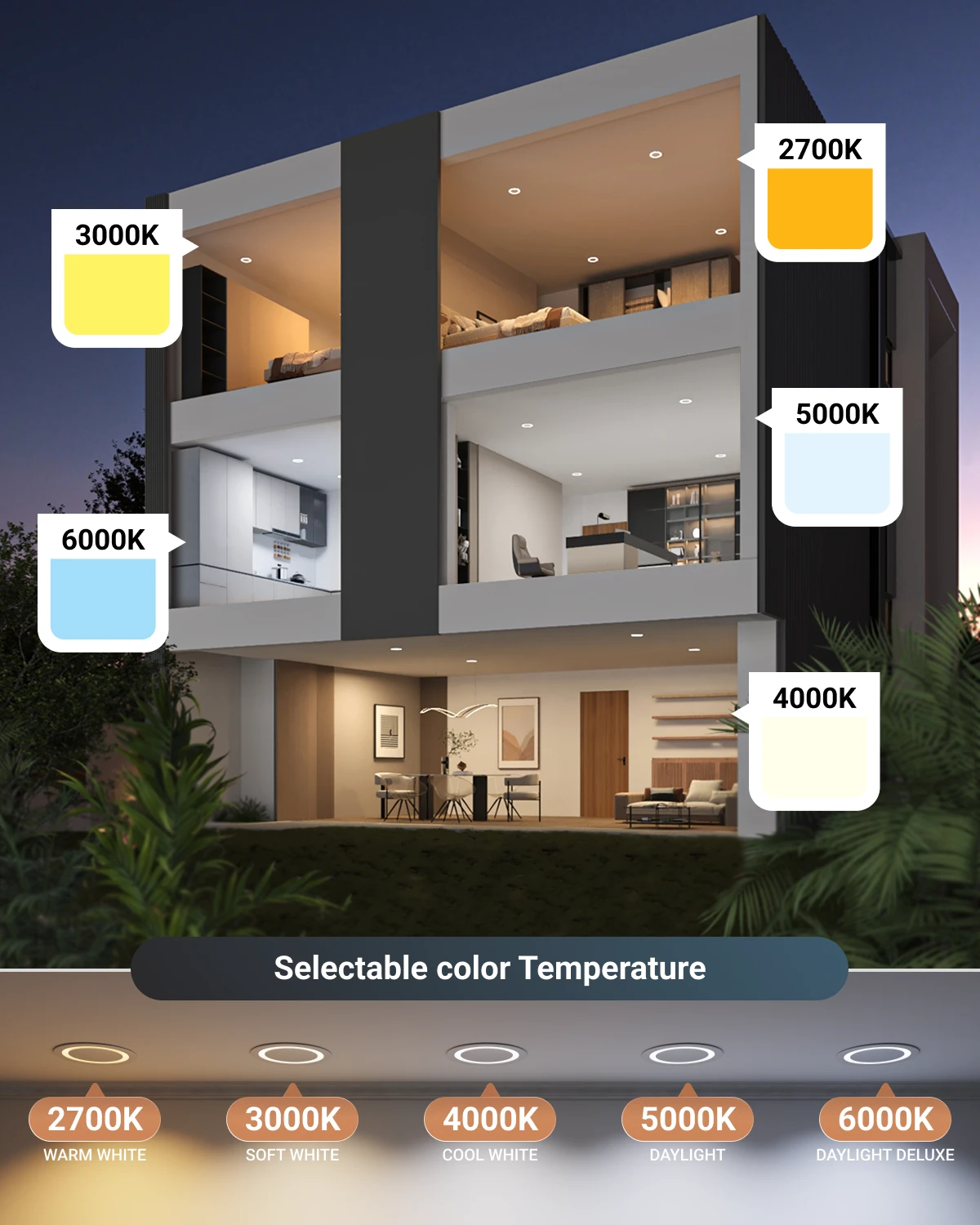 900 Lumens, selectable color temperature, dimmable, dustproof, damp rated, junction box