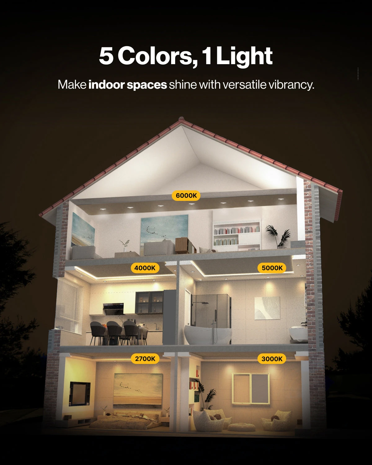 | Color | Selectable 2700K~6000K |