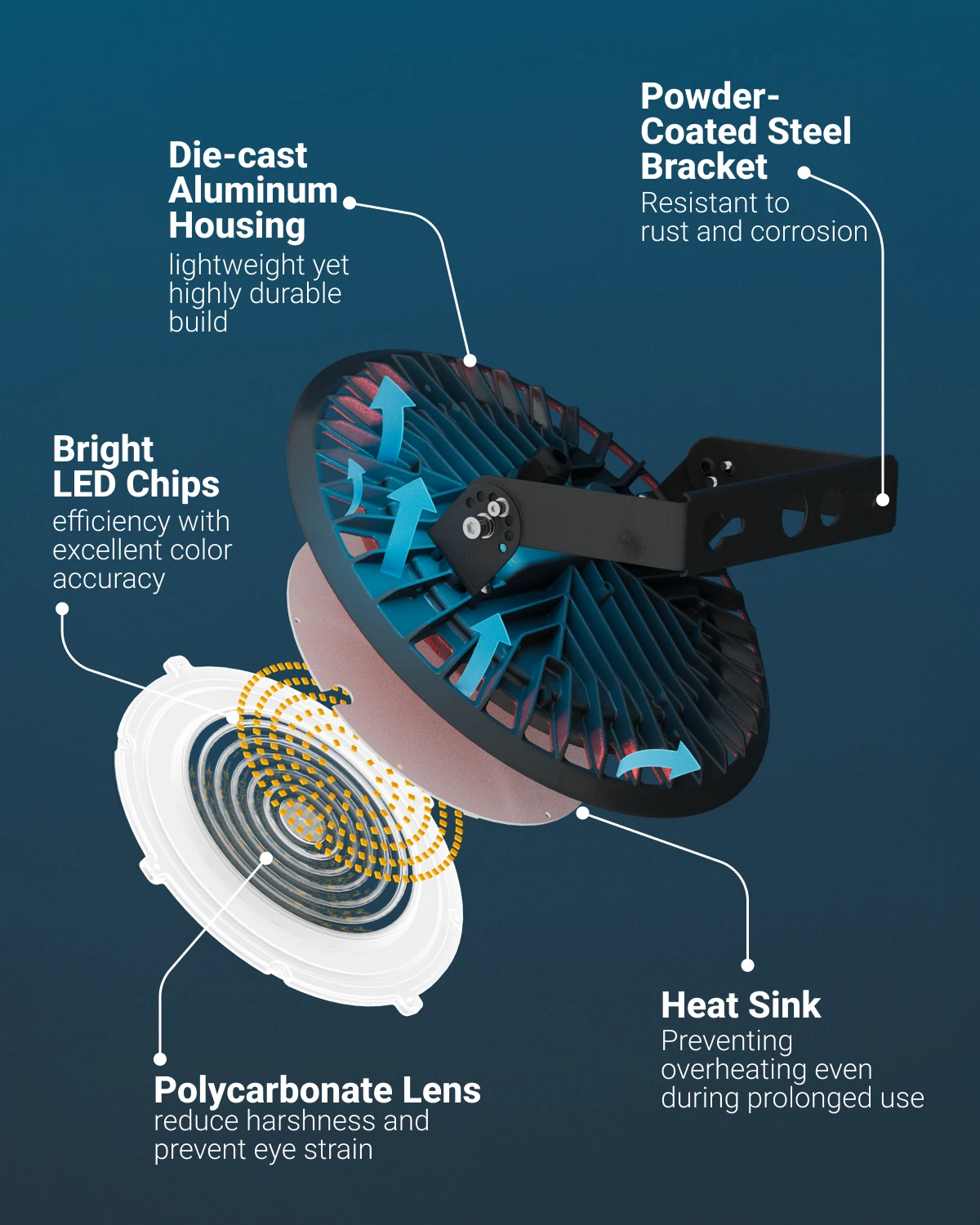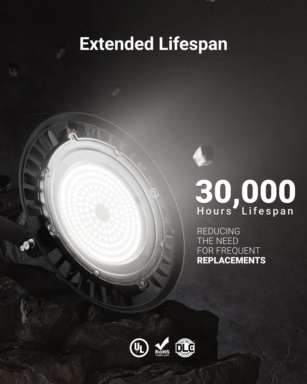 SKU: C3VUY 7323355578435 Categories: 5000K Daylight, Color Temperature Tags: 250W Metal Halide, 400W Metal Halide, 5000K, Base Type|na, Beam Angle|110, Certifications|ETL RoHS, Commercial, Dimmable|Non-Dimmable, DLC 5.1, Efficiency|116, Features_UFO, Features_Waterproof, High Bay, Ic rated|na, Ip rating|IP65, LED, Lifetime|30000, Lighting, Linkable|na, Lumens|19500, Material|Die-Cast Aluminum, Moisture Rating|Wet Rated, Operating Temperature|-40°F to 113°F, Outdoor, Parking_garage, Residential_garage, RoHS, Switching Cycles|50000, UFO, Usage|Indoor, Voltage|120, Warehouse, Warranty|5-Year, Waterproof, Wattage|150, Working Time|na